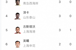中超射手榜:杨超声、泽卡、阿齐兹、马特乌斯、古斯塔沃3球居首