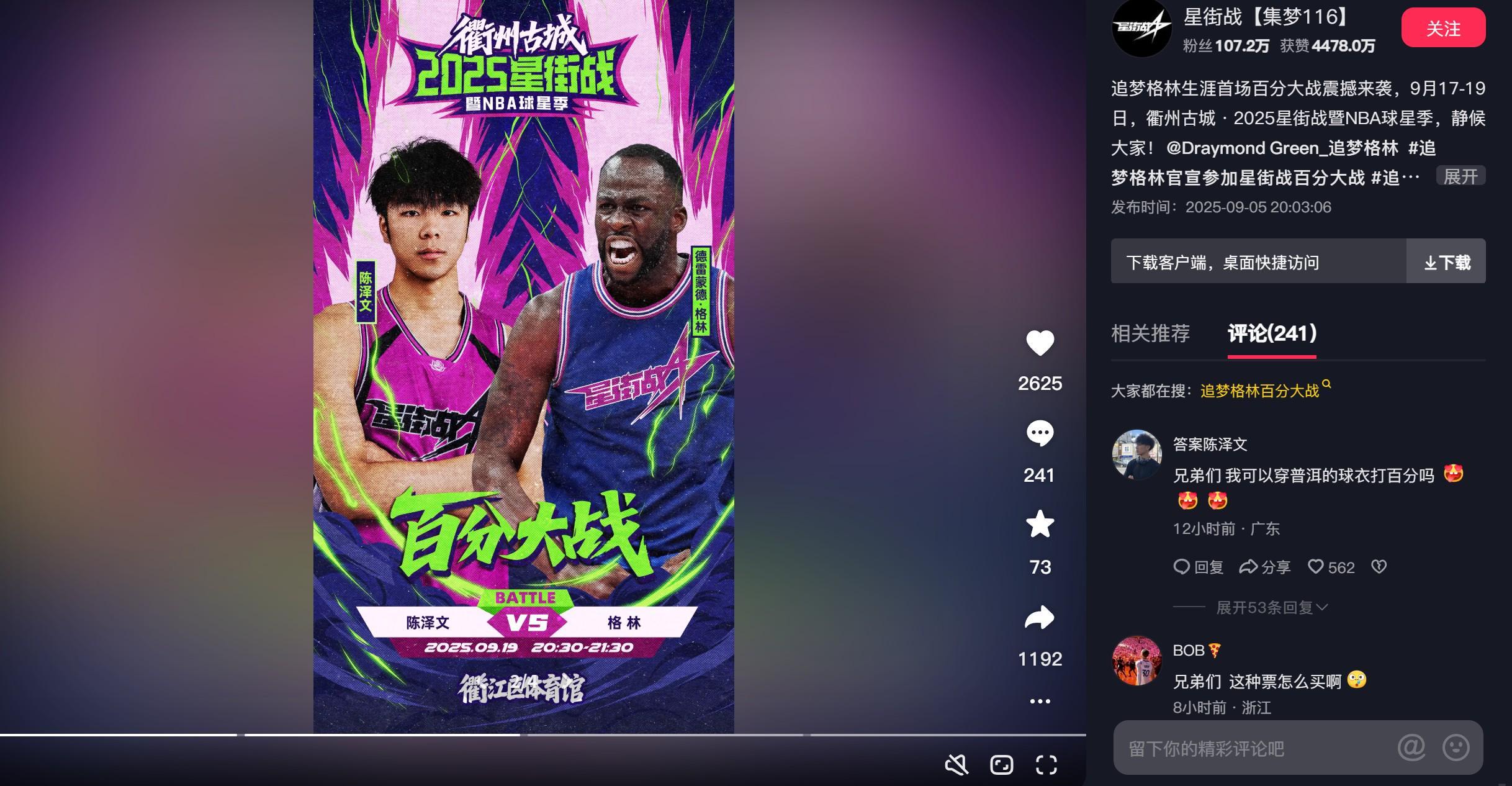北京时间9月5日,集梦116官方宣布,勇士队球星追梦格林9月19日将来到浙江衢州区体育馆参加生涯首场百分大战。